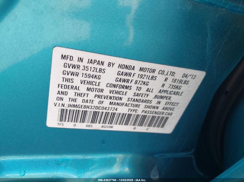 2013 HONDA FIT 2013 року Бензин, 1.5, Передній привід, vin - JHMGE8H32DC043724 з США