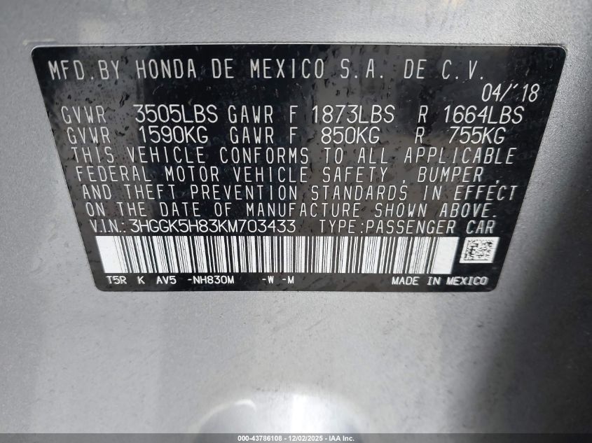 Колір СрібнийЦиліндри 4Привід Передній привідVIN 3HGGK5H83KM703433Стан Заводиться та їде (перевірено)Ушкодження Передня або задня AutoRIA