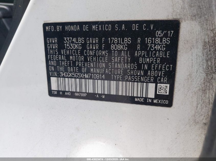 2017 HONDA FIT 2017 року Бензин, 1.5, Передній привід, vin - 3HGGK5G5XHM710914 з США
