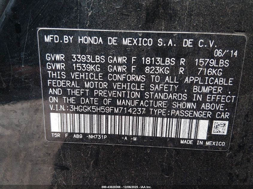 2015 HONDA FIT 2015 року Бензин, 1.5, Передній привід, vin - 3HGGK5H59FM714237 з США