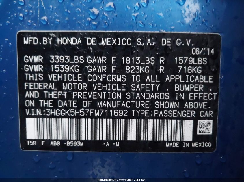 Колір СинійЦиліндри 4Привід Передній привідVIN 3HGGK5H57FM711692Стан Заводиться та їде (перевірено)Ушкодження Передня або задня AutoRIA
