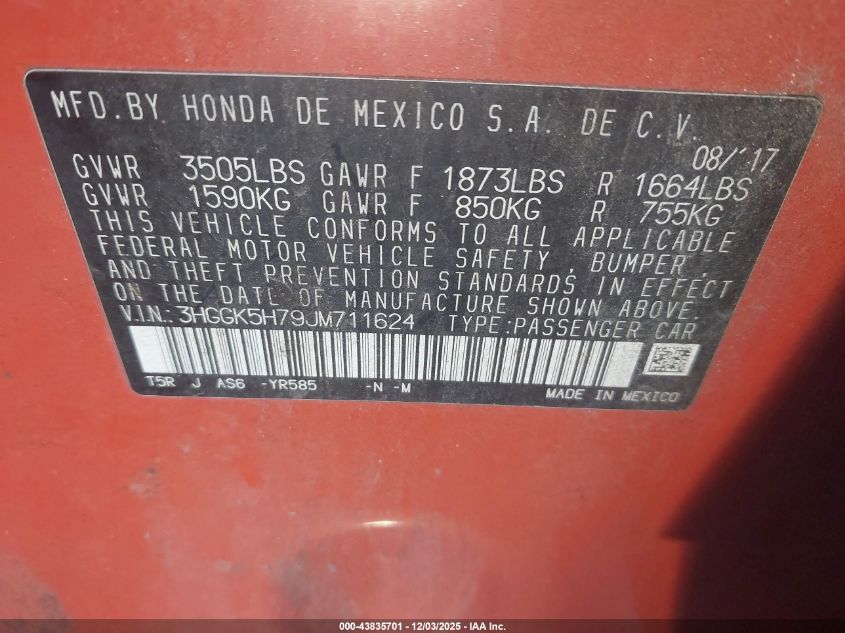 2018 HONDA FIT 2018 року Бензин, 1.5, Передній привід, vin - 3HGGK5H79JM711624 з США