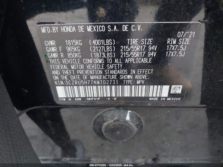 2022 HONDA HR-V 2022 року Бензин, 1.8, Передній привід, vin - 3CZRU5H77NM702731 з США