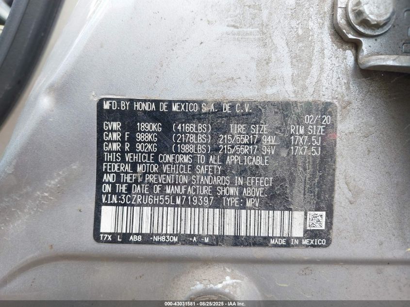 2020 HONDA HR-V 2020 року Бензин, 1.8, Повний привід, vin - 3CZRU6H55LM719397 з США