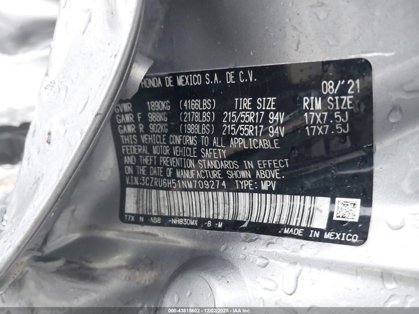 2022 HONDA HR-V 2022 року Бензин, 1.8, Повний привід, vin - 3CZRU6H51NM709274 з США