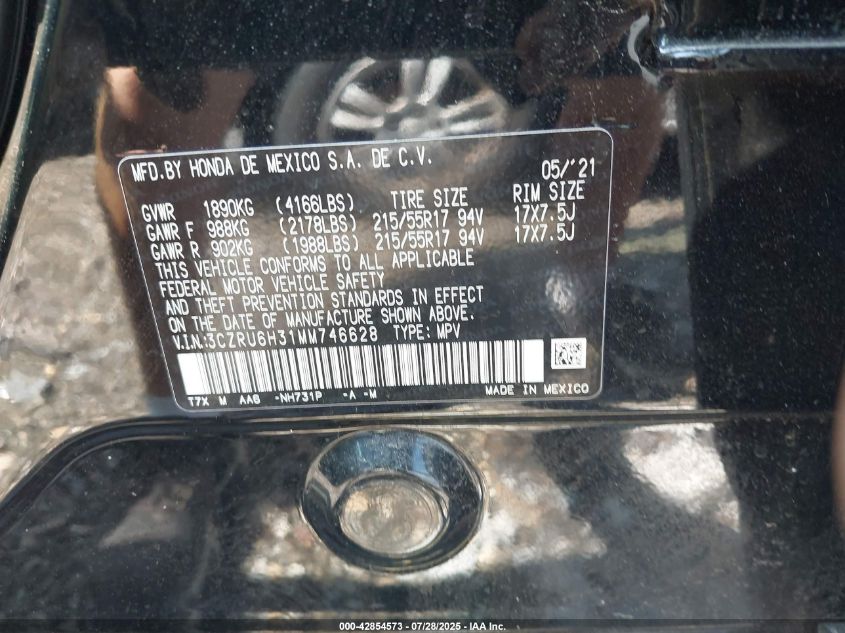 2021 HONDA HR-V 2021 року Бензин, 1.8, Повний привід, vin - 3CZRU6H31MM746628 з США