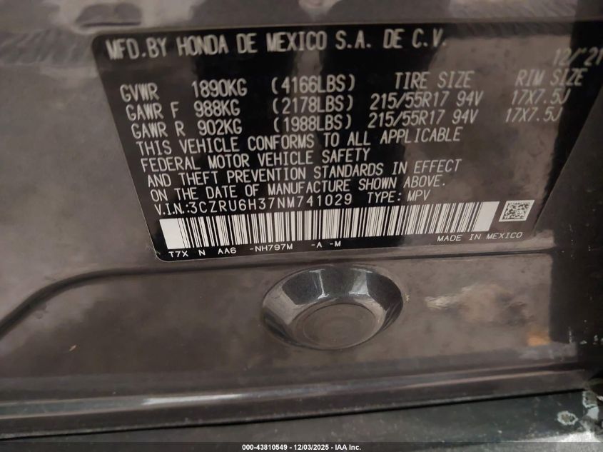 2022 HONDA HR-V 2022 року Бензин, 1.8, Повний привід, vin - 3CZRU6H37NM741029 з США
