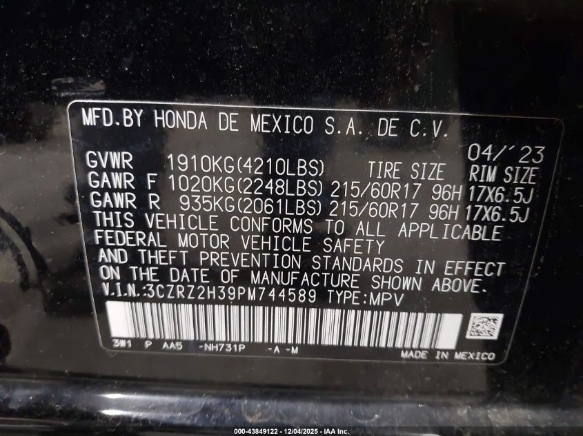 2023 HONDA HR-V 2023 року Бензин, 2.0, Повний привід, vin - 3CZRZ2H39PM744589 з США