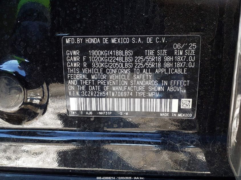 2026 HONDA HR-V 2026 року Бензин, 2.0, Повний привід, vin - 3CZRZ2H54TM706974 з США