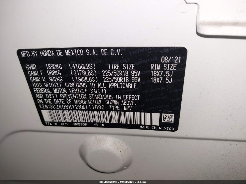 2022 HONDA HR-V 2022 року Бензин, 1.8, Повний привід, vin - 3CZRU6H12NM711080 з США