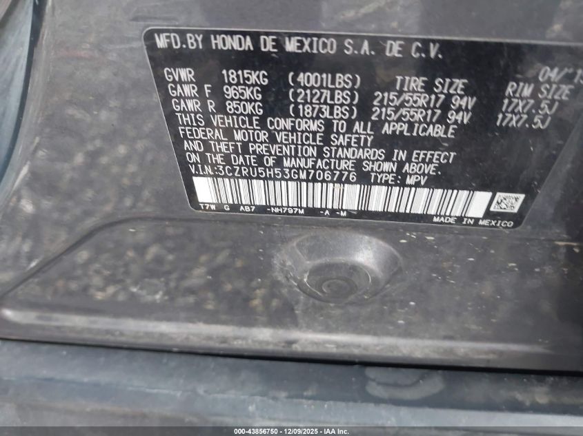 2016 HONDA HR-V 2016 року Бензин, 1.8, Передній привід, vin - 3CZRU5H53GM706776 з США