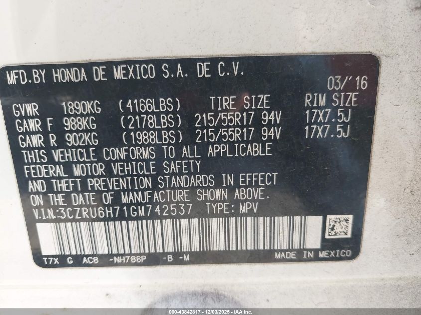 2016 HONDA HR-V 2016 року Бензин, 1.8, Повний привід, vin - 3CZRU6H71GM742537 з США
