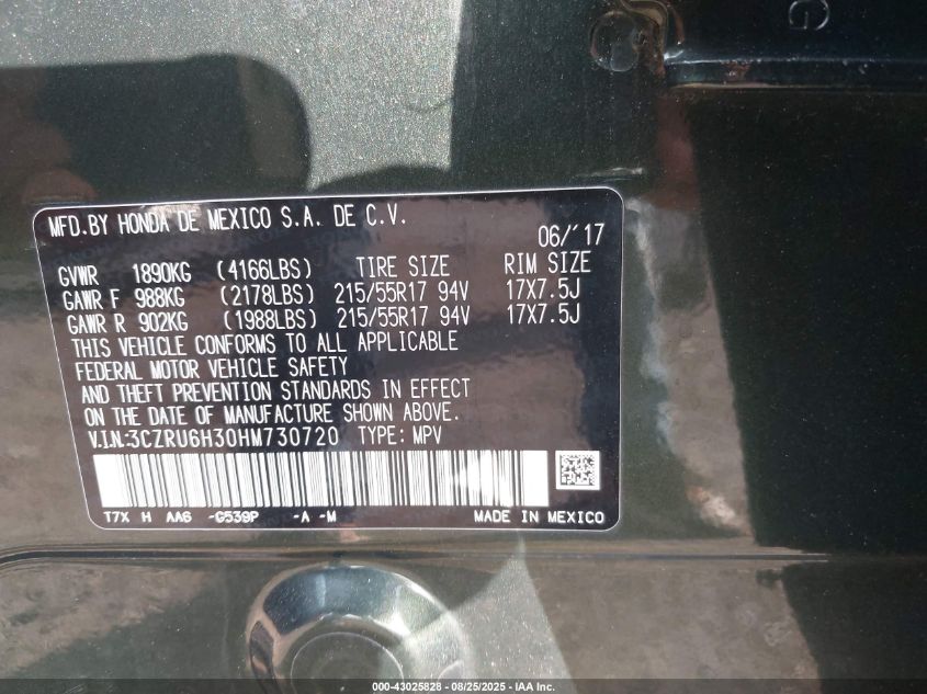 2017 HONDA HR-V 2017 року Бензин, 1.8, Повний привід, vin - 3CZRU6H30HM730720 з США