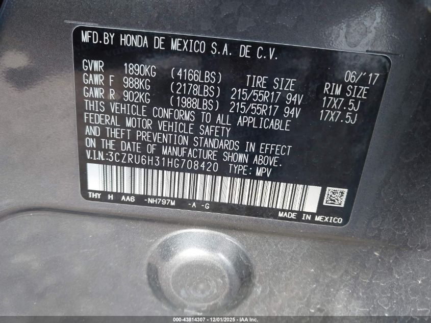 2017 HONDA HR-V 2017 року Бензин, 1.8, Повний привід, vin - 3CZRU6H31HG708420 з США