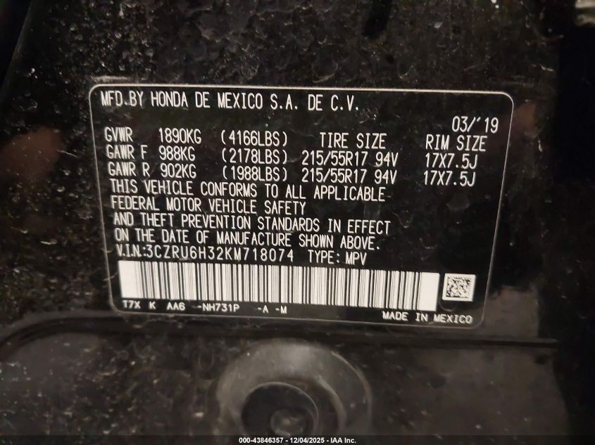 2019 HONDA HR-V 2019 року Бензин, 1.8, Повний привід, vin - 3CZRU6H32KM718074 з США