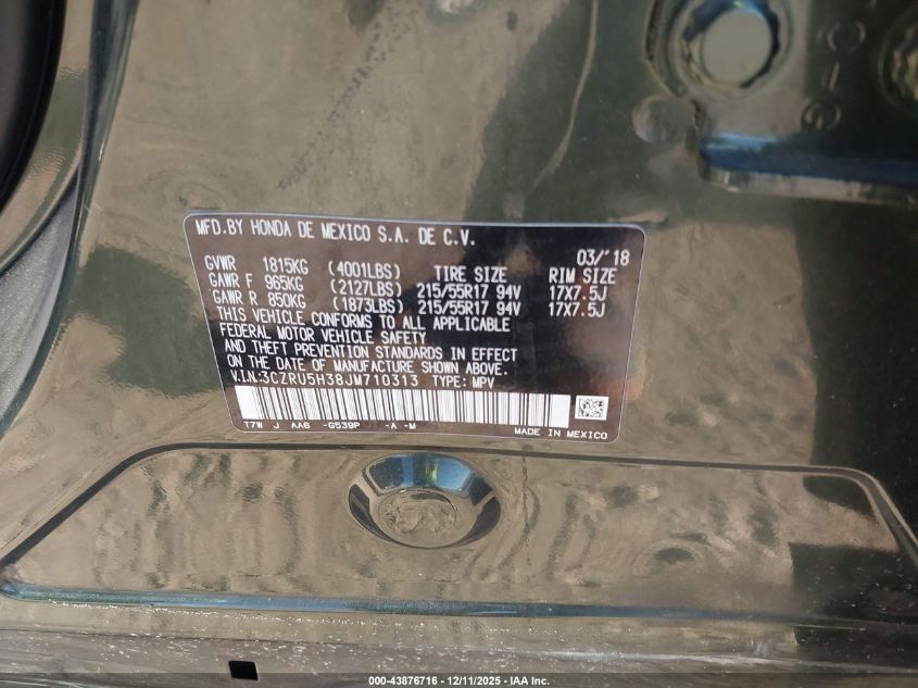 2018 HONDA HR-V 2018 року Бензин, 1.8, Передній привід, vin - 3CZRU5H38JM710313 з США
