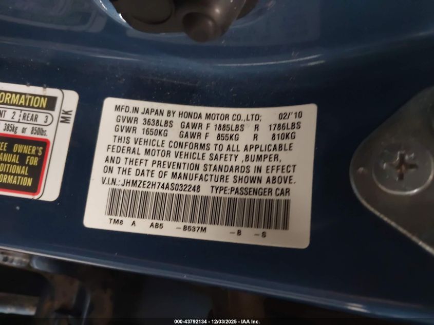 2010 HONDA INSIGHT EX