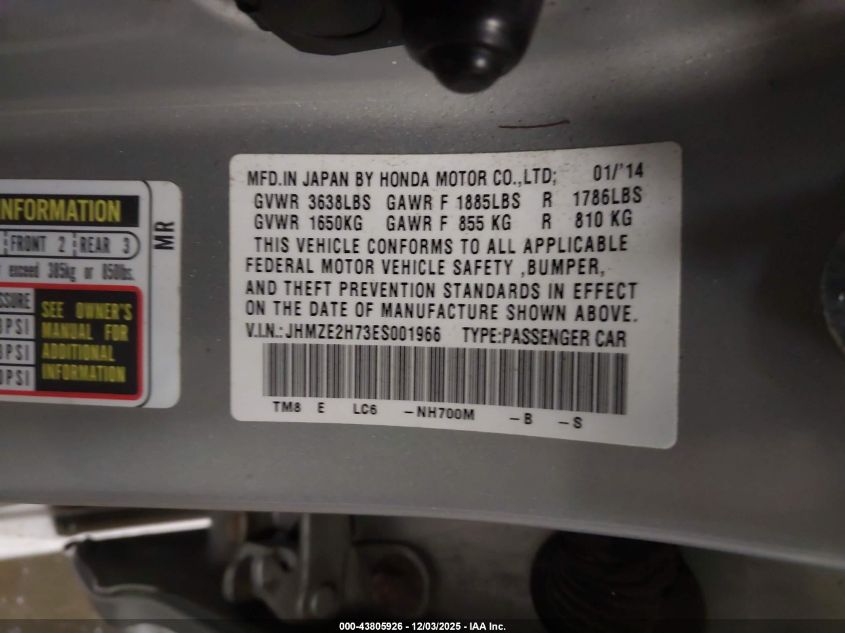 2014 HONDA INSIGHT 2014 року Гібрид, 1.3, Передній привід, vin - JHMZE2H73ES001966 з США