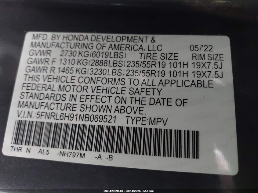 Колір СірийЦиліндри 6Привід Передній привідVIN 5FNRL6H91NB069521Стан СтаціонарноУшкодження Вандалізм AutoRIA