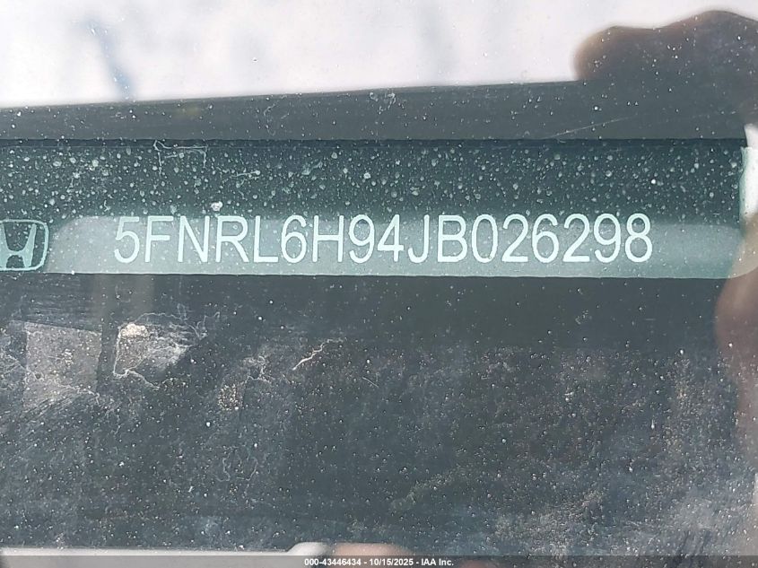 Колір ЧорнийЦиліндри 6Привід Передній привідVIN 5FNRL6H94JB026298Стан Заводиться та їде (перевірено)Ушкодження З боківДата аукціону 2025-12-16 AutoRIA