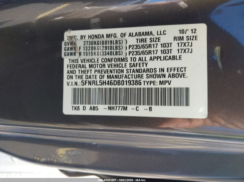 Колір СірийЦиліндри 6Привід Передній привідVIN 5FNRL5H46DB019386Стан Заводиться та їде (перевірено)Ушкодження Передня або задняДата аукціону 2025-12-11 AutoRIA