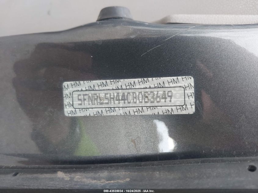 Колір СірийЦиліндри 6Привід Передній привідVIN 5FNRL5H44CB083649Стан СтаціонарноУшкодження Ліва сторонаДата аукціону 2025-12-08 AutoRIA