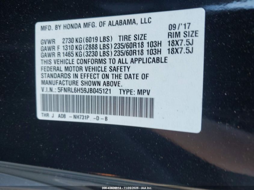 2018 HONDA ODYSSEY EXL