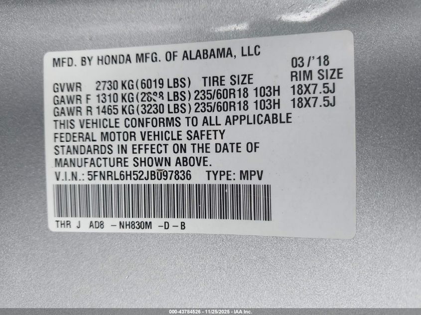 2018 HONDA ODYSSEY 2018 року Бензин, 3.5, Передній привід, vin - 5FNRL6H52JB097836 з США