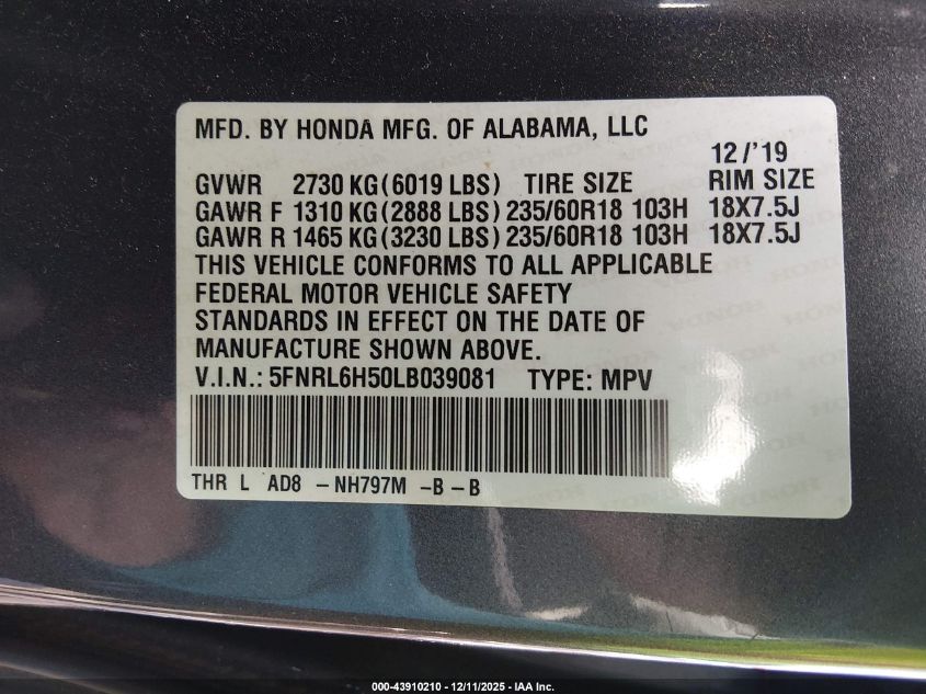 Колір СірийЦиліндри 6Привід Передній привідVIN 5FNRL6H50LB039081Стан Заводиться та їде (перевірено)Ушкодження Передня або задня AutoRIA