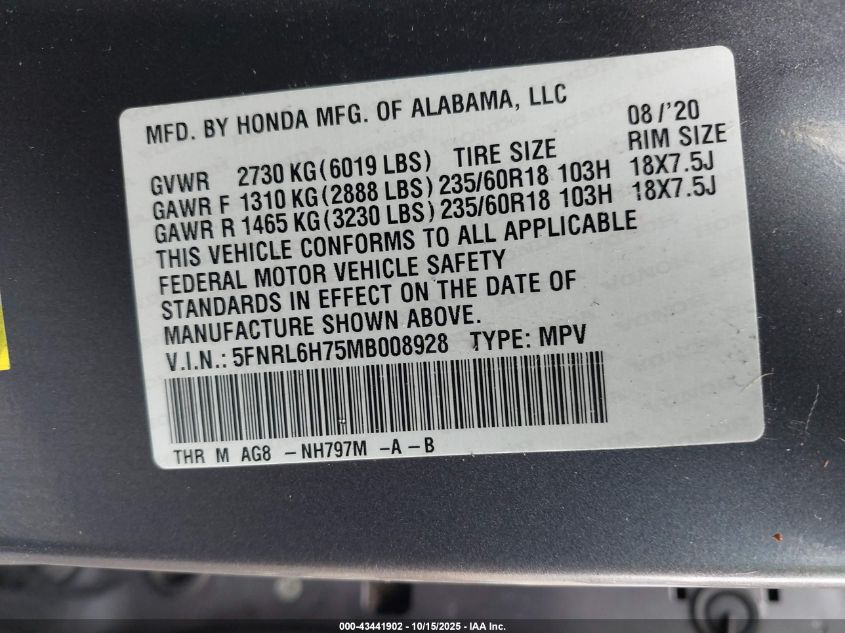 2021 HONDA ODYSSEY TOURING