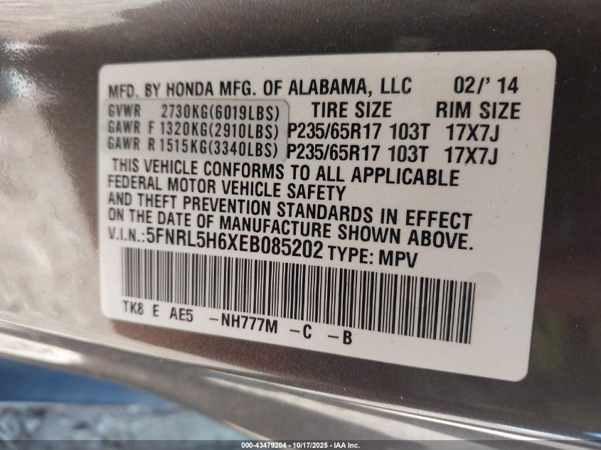 Колір СірийЦиліндри 6Привід Передній привідVIN 5FNRL5H6XEB085202Стан Заводиться та їде (перевірено)Ушкодження Передня або задняДата аукціону 2025-12-10 AutoRIA