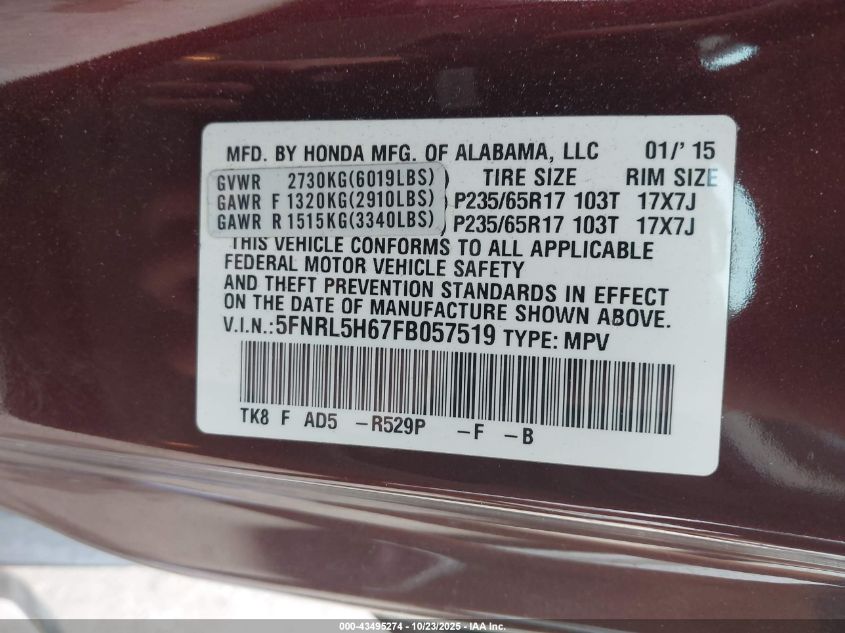 Колір БордовийЦиліндри 6Привід Передній привідVIN 5FNRL5H67FB057519Стан Заводиться та їде (перевірено)Ушкодження Передня або задня AutoRIA