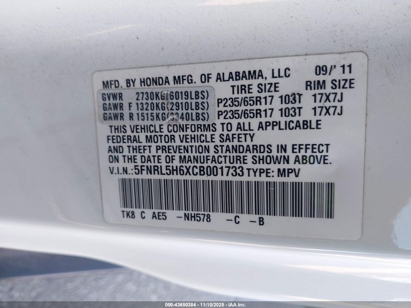 Колір БілийЦиліндри 6Привід Передній привідVIN 5FNRL5H6XCB001733Стан Заводиться та їде (перевірено)Ушкодження Задня AutoRIA