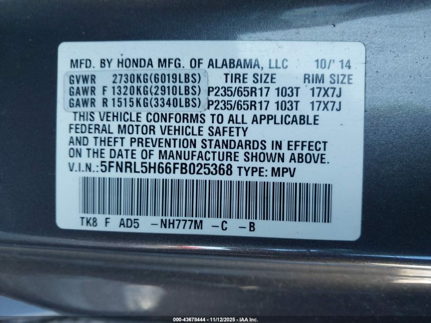 Колір СірийЦиліндри 6Привід Передній привідVIN 5FNRL5H66FB025368Стан СтаціонарноУшкодження Передня або задня AutoRIA