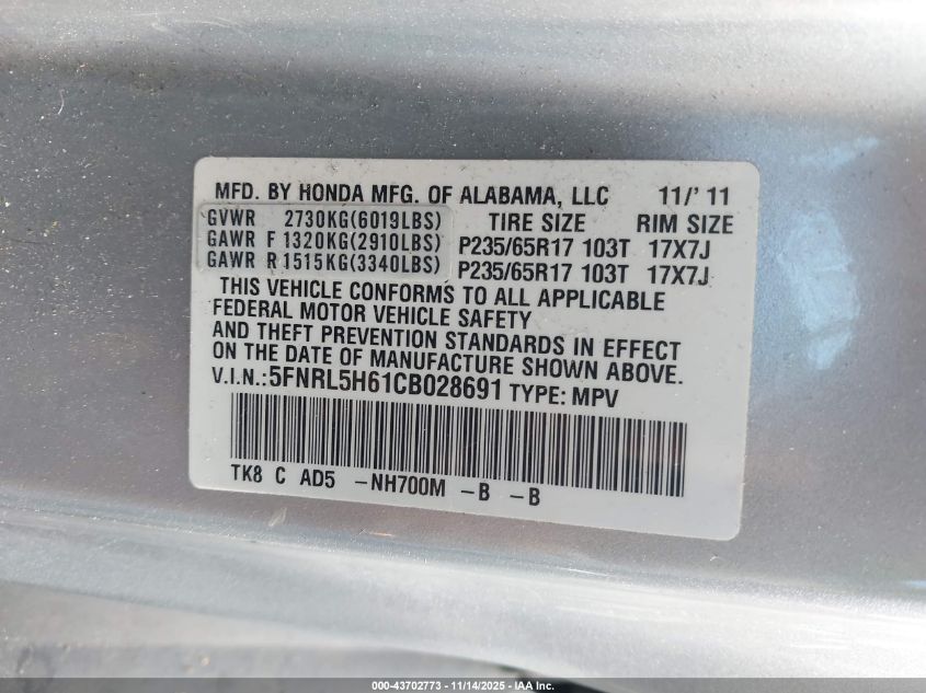 Колір СрібнийЦиліндри 6Привід Передній привідVIN 5FNRL5H61CB028691Стан Заводиться та їде (перевірено)Ушкодження Передня або задня AutoRIA