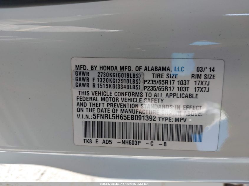 Колір БілийЦиліндри 6Привід Передній привідVIN 5FNRL5H65EB091392Стан Заводиться та їде (перевірено)Ушкодження Передня праваДата аукціону 2025-12-08 AutoRIA