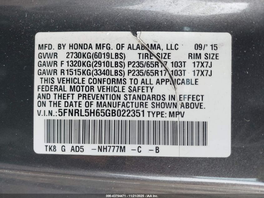Колір СірийЦиліндри 6Привід Передній привідVIN 5FNRL5H65GB022351Стан Заводиться та їде (перевірено)Ушкодження Задня ліва AutoRIA