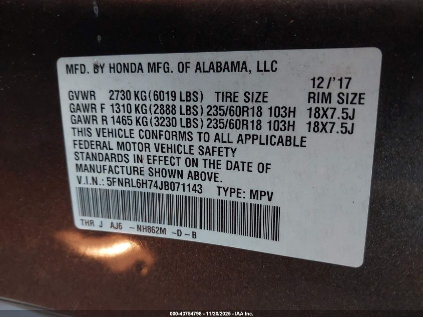 2018 HONDA ODYSSEY EXL