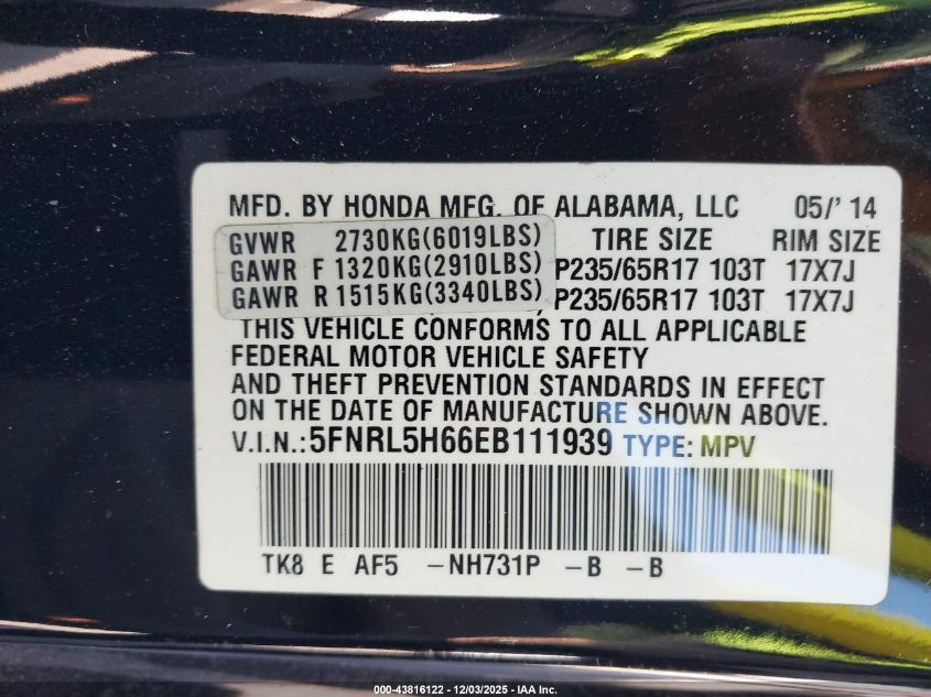 Колір ЧорнийЦиліндри 6Привід Передній привідVIN 5FNRL5H66EB111939Стан Заводиться та їде (перевірено)Ушкодження Задня ліва AutoRIA