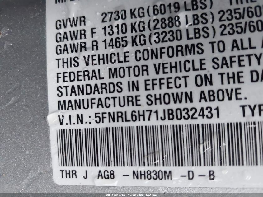 Колір СрібнийЦиліндри 6Привід Передній привідVIN 5FNRL6H71JB032431Стан Заводиться та їде (перевірено)Ушкодження Передня ліва AutoRIA