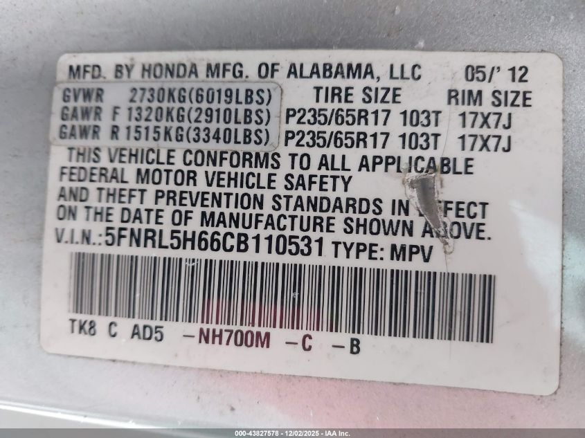 Колір СрібнийЦиліндри 6Привід Передній привідVIN 5FNRL5H66CB110531Стан Заводиться та їде (перевірено)Ушкодження Ліва сторона AutoRIA