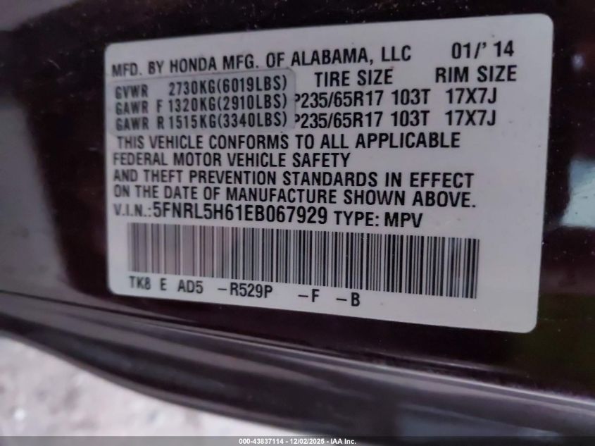 2014 HONDA ODYSSEY 2014 року Бензин, 3.5, Передній привід, vin - 5FNRL5H61EB067929 з США