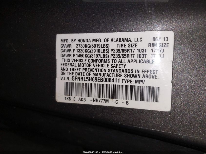 Колір СірийЦиліндри 6Привід Передній привідVIN 5FNRL5H69EB006411Стан Заводиться та їде (перевірено)Ушкодження Задня AutoRIA
