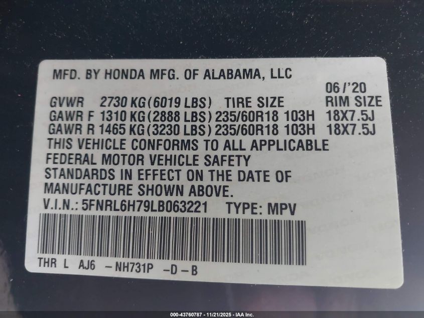 Колір ЧорнийЦиліндри 6Привід Передній привідVIN 5FNRL6H79LB063221Стан Заводиться та їде (перевірено)Ушкодження Передня або задня AutoRIA