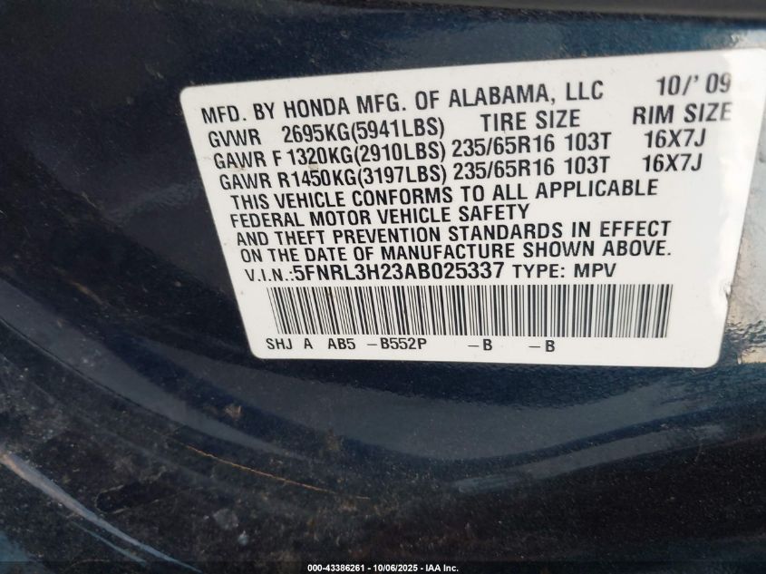 Колір СинійЦиліндри 6Привід Передній привідVIN 5FNRL3H23AB025337Стан Заводиться та їде (перевірено)Ушкодження Передня ліва AutoRIA