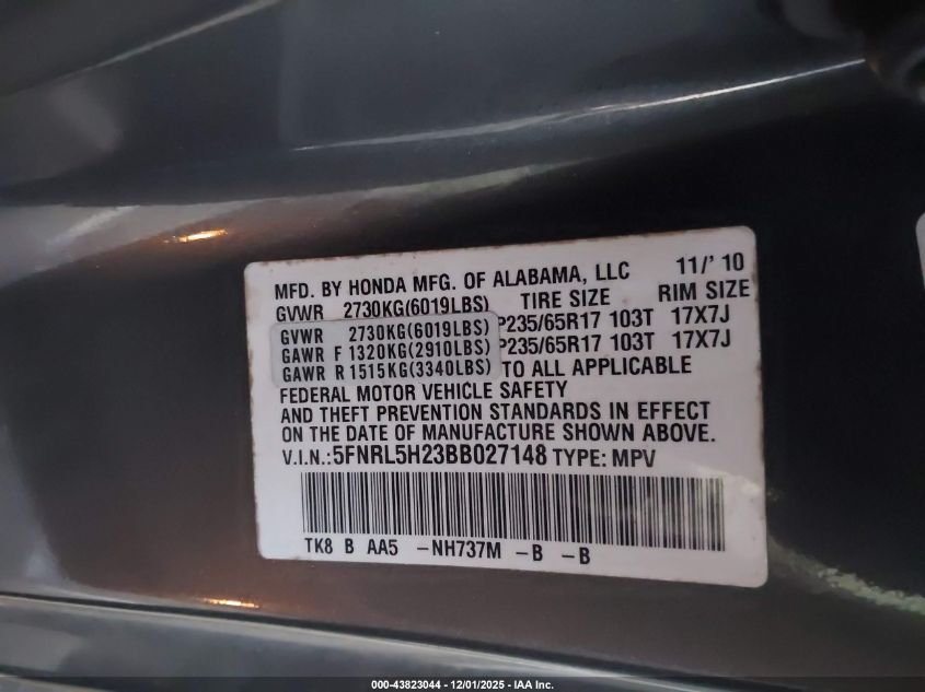 Колір СірийЦиліндри 6Привід Передній привідVIN 5FNRL5H23BB027148Стан Заводиться та їде (перевірено)Ушкодження Передня або задня AutoRIA