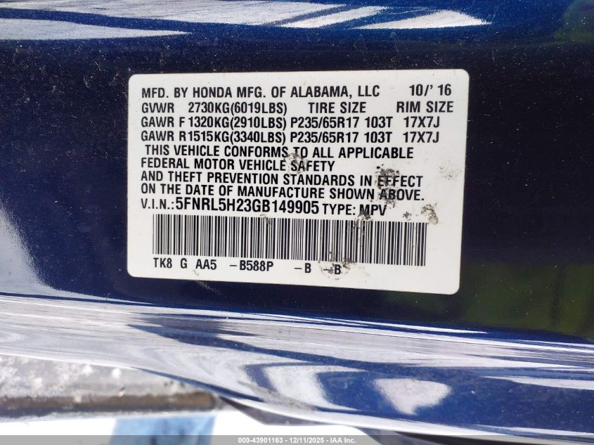 Колір СинійЦиліндри 6Привід Передній привідVIN 5FNRL5H23GB149905Стан СтаціонарноУшкодження Передня права AutoRIA