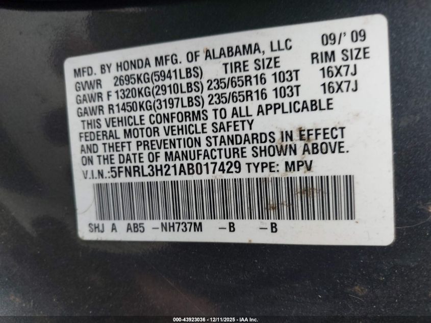 Колір СірийЦиліндри 6Привід Передній привідVIN 5FNRL3H21AB017429Стан НевідомоУшкодження Звичайний знос AutoRIA
