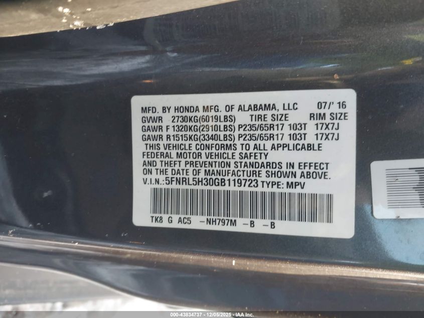 Колір СірийЦиліндри 6Привід Передній привідVIN 5FNRL5H30GB119723Стан Заводиться та їде (перевірено)Ушкодження Права сторона AutoRIA