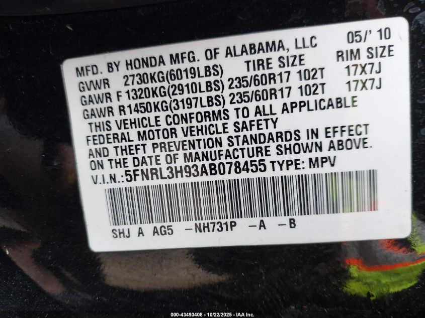 2010 HONDA ODYSSEY LX